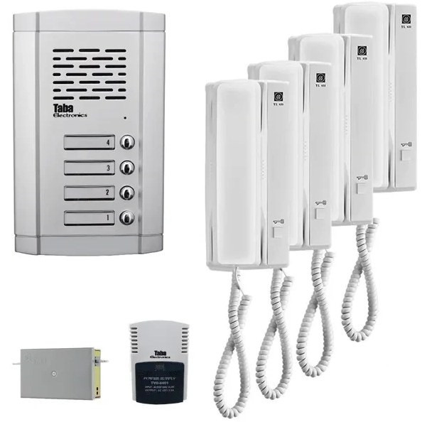 متعلقات: پک چهار واحده شامل: پنل چهار واحده ..... *گوشی صوتی : 4 عدد ...... *قفل تابا .........* ترانس مخصوص تابا
